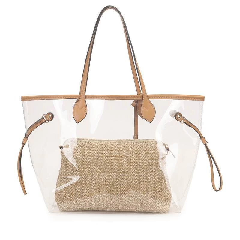A Bolsa WJ 46328 é um acessório de moda feminina com um design contemporâneo. Confeccionada com material transparente de alta qualidade, esta bolsa de mão possui um elegante fecho de botão que garante a segurança dos seus pertences. Seu grande diferencial é a necessaire interna de palha, que adiciona um toque rústico e sofisticado, além de proporcionar discrição para itens pessoais. Perfeita para complementar looks de verão ou para um visual mais descontraído e estiloso, esta bolsa transparente é a escolha ideal para quem busca versatilidade e tendência.