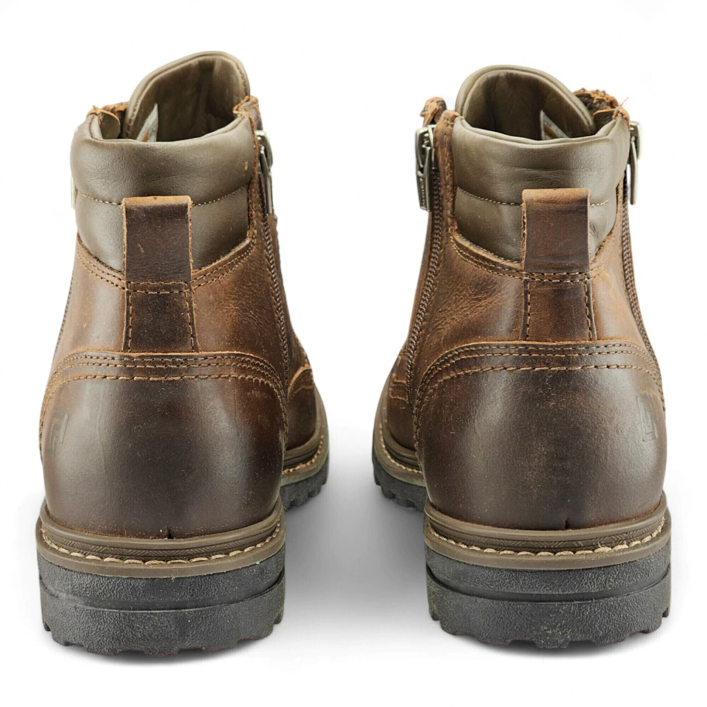 A Bota Workboot clássica Freeway Django, na cor Chocolate, é confeccionada em couro natural legítimo, garantindo alta resistência e durabilidade para o uso diário. Seu design robusto conta com fechamento duplo por cadarço e zíperes laterais (12cm cada), que facilitam significativamente o calce e o ajuste perfeito. Detalhes como passadores em metais prateados, colarinho acolchoado para maior conforto, e o logo discreto da marca na lateral, elevam o estilo. O solado é de borracha ecológica, costurado ao cabedal para maior segurança e durabilidade, com frisos que proporcionam excelente aderência. A palmilha Confortpalm, removível, é um diferencial, sendo composta por borracha, material têxtil e PU ultra macio, oferecendo superior absorção de impacto e mantendo o conforto ao longo do dia. O forro interno, em couro e tecido têxtil, contribui para a respirabilidade e bem-estar dos pés. Ideal para compor looks casuais, urbanos e para o inverno, esta bota é a união perfeita de funcionalidade e elegância.