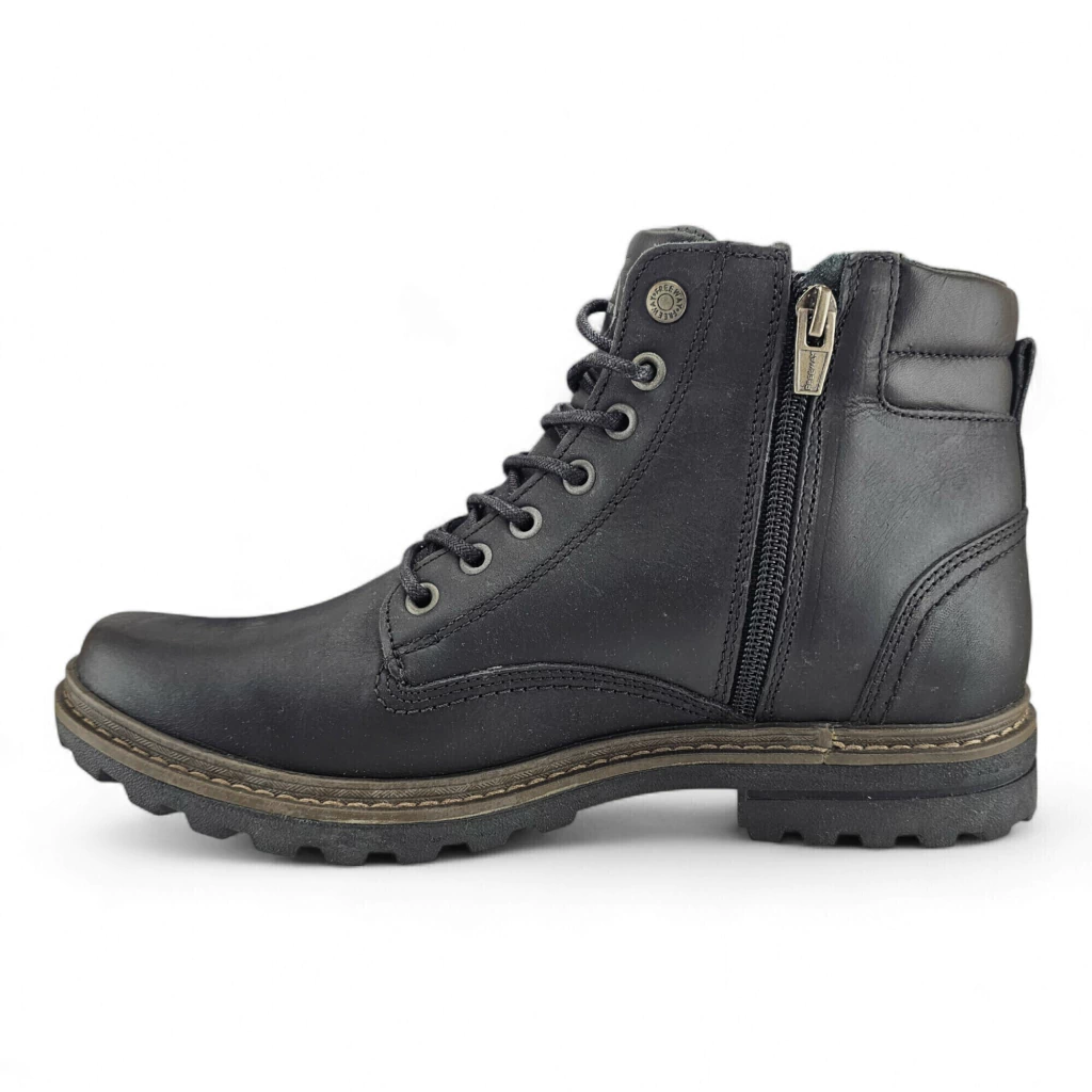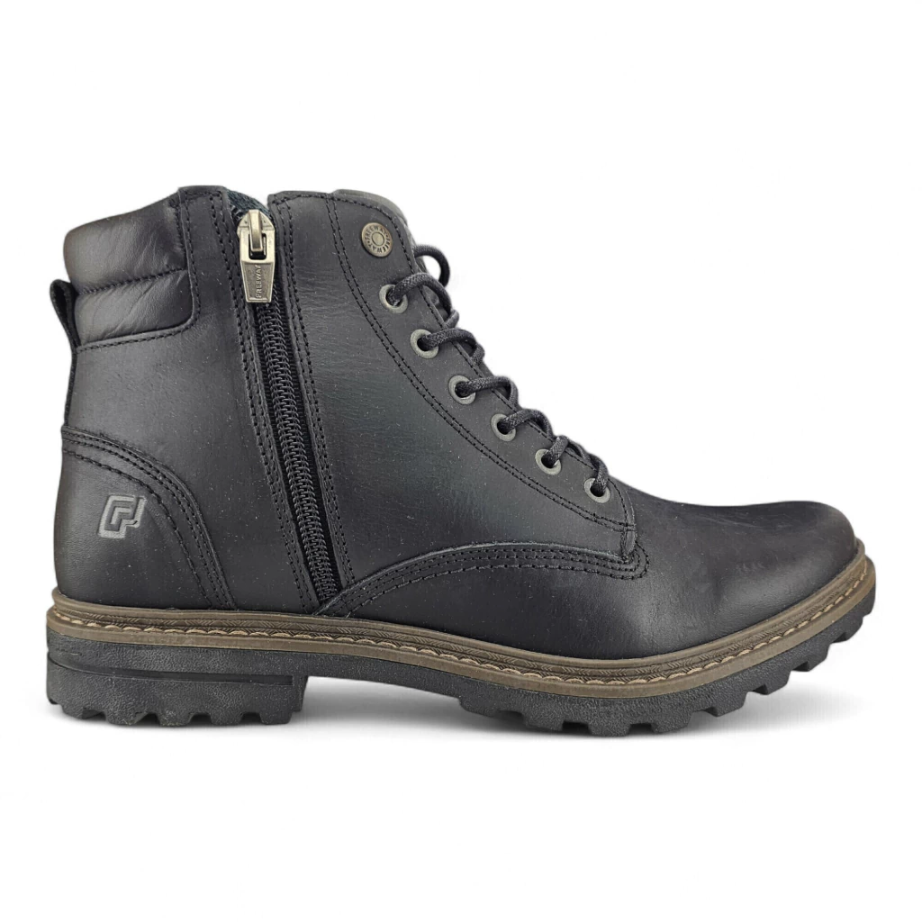 Com um salto bloco de 3cm, a bota proporciona estabilidade e um visual imponente, ideal para o homem moderno.