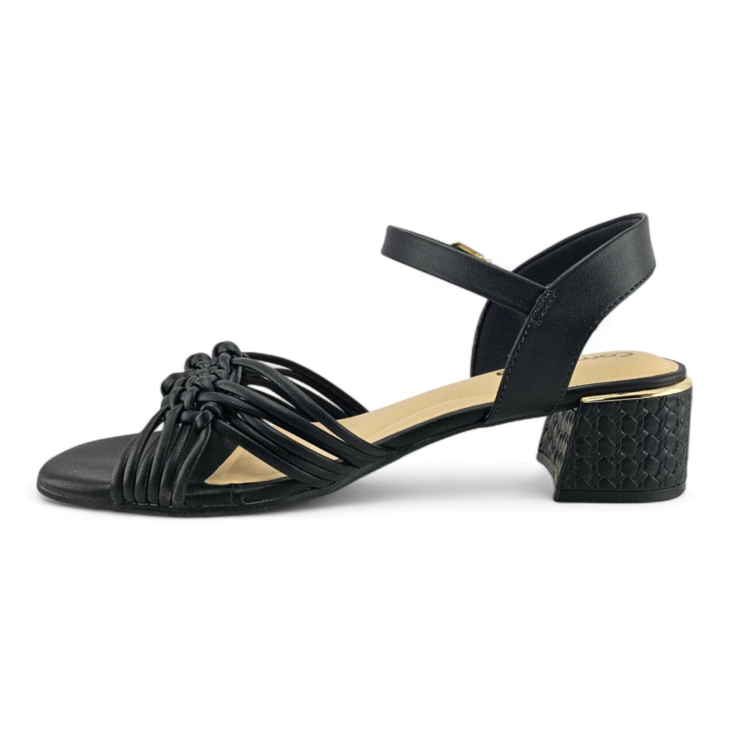 Design exclusivo com tiras tramadas na parte frontal e salto bloco de 5 cm, que alia elegância e estabilidade.
