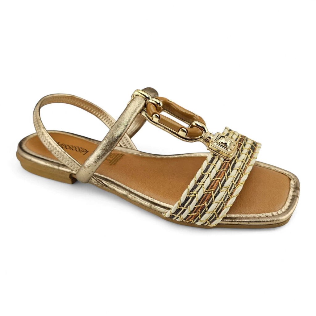 A Sandália Rasteira Mississipi MF302 é a escolha ideal para quem busca conforto e estilo em um único calçado. Com tira lurex e detalhe em pedra, ela adiciona um toque de brilho e elegância aos seus pés.