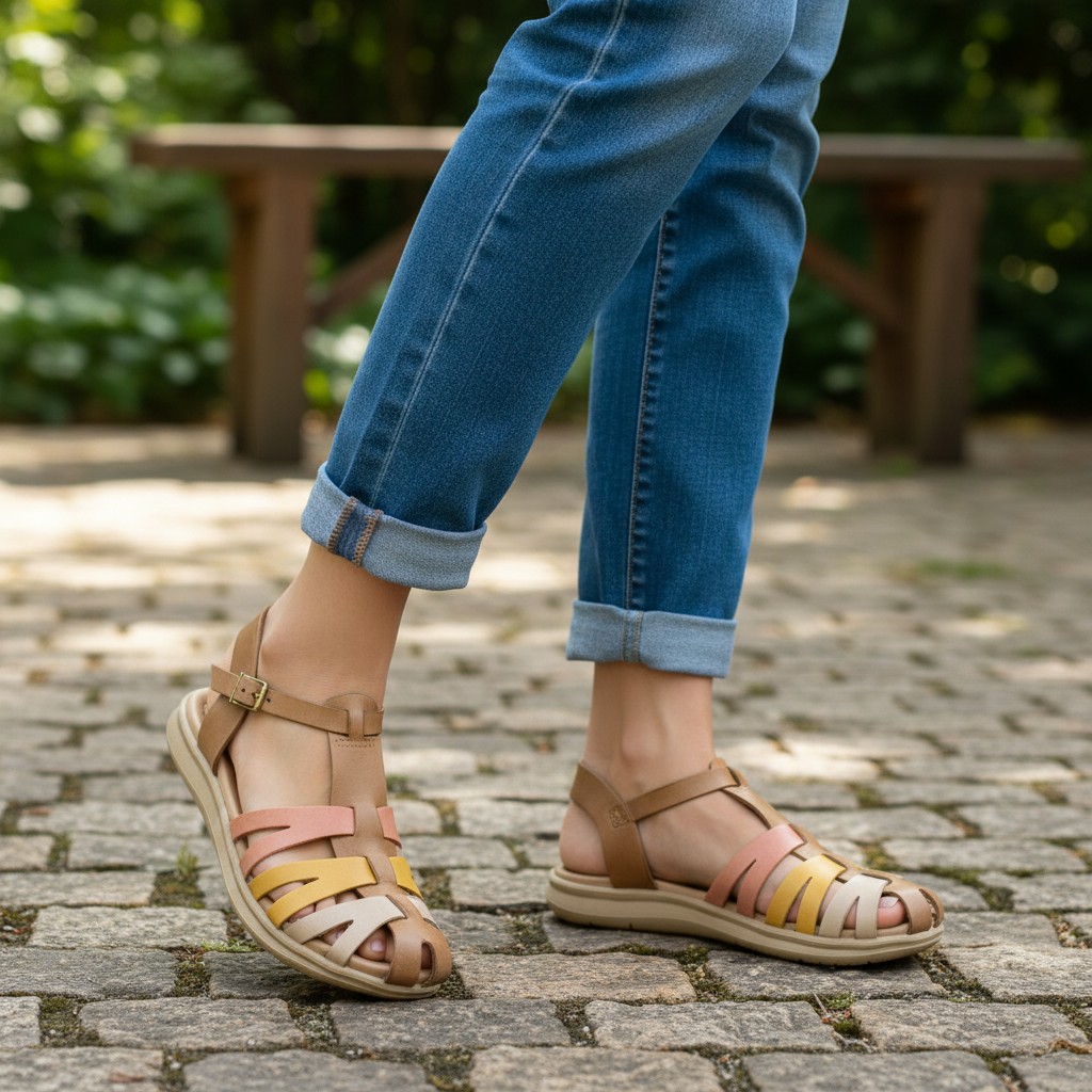 Sandália Feminina Pegada 232820 Três Tiras Fechada Couro