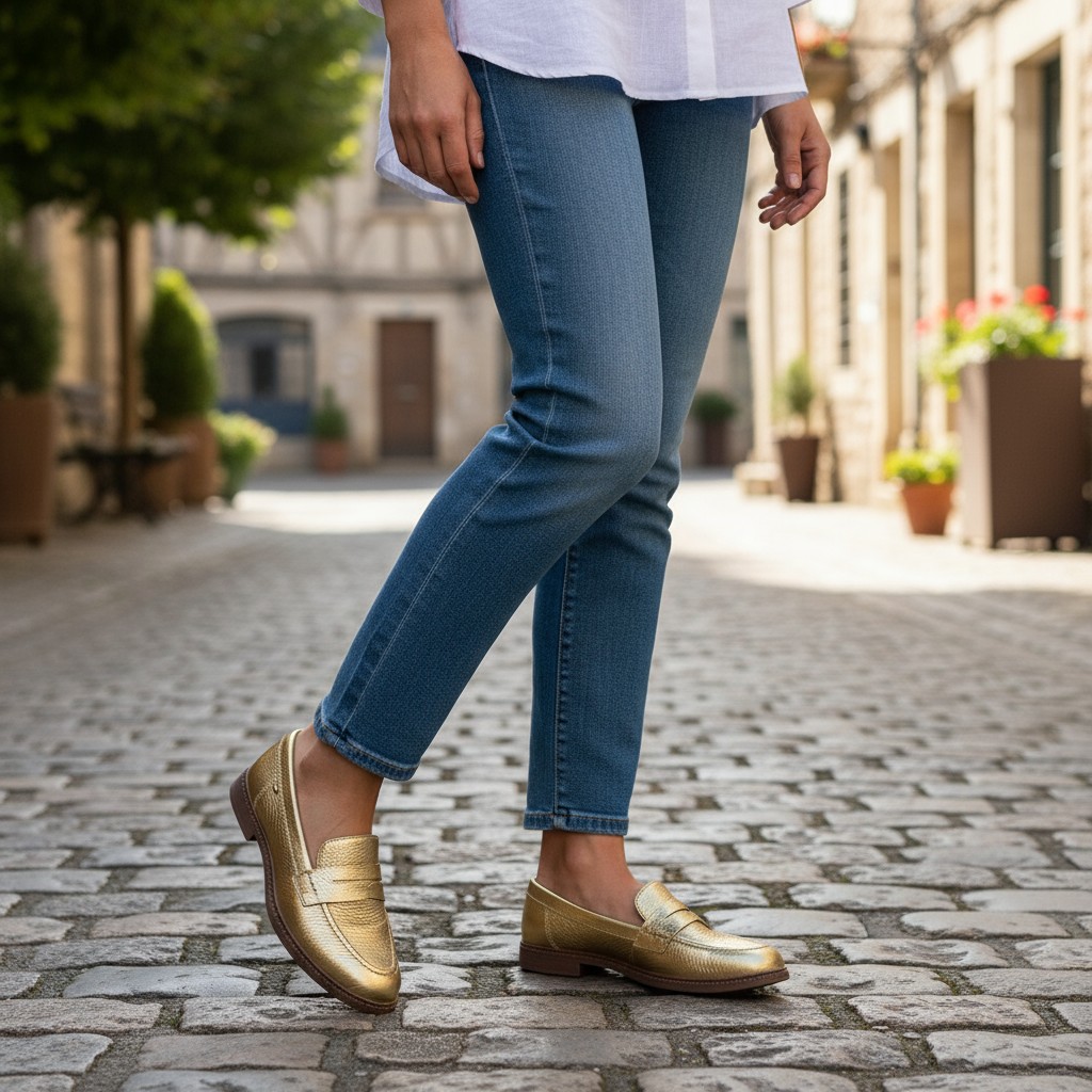 Detalhes em dourado que adicionam um charme especial ao calçado.