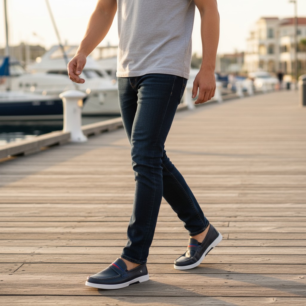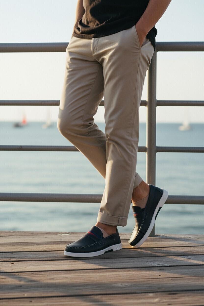 O design mocassim clássico com toque moderno do acabamento estonado permite combinações versáteis, perfeito para eventos casuais ou compromissos sociais.