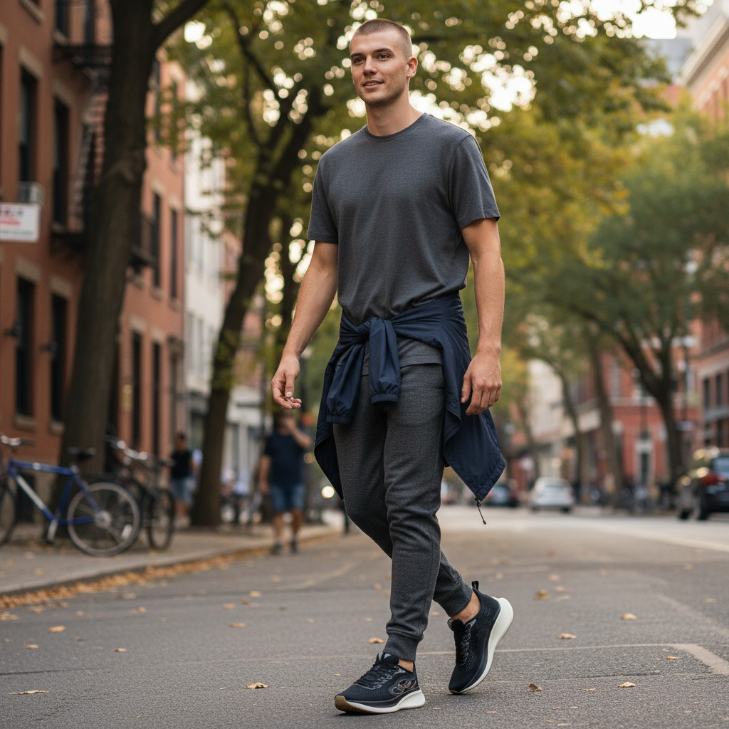 Design com acabamento moderno e esportivo nas cores Preto/Branco, ideal para o estilo do corredor.